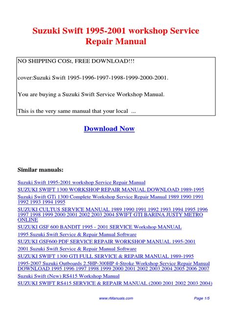 Free PDF Suzuki Swift 1995-2001 workshop Service Repair Manual PDF Audio CD ManyBooks